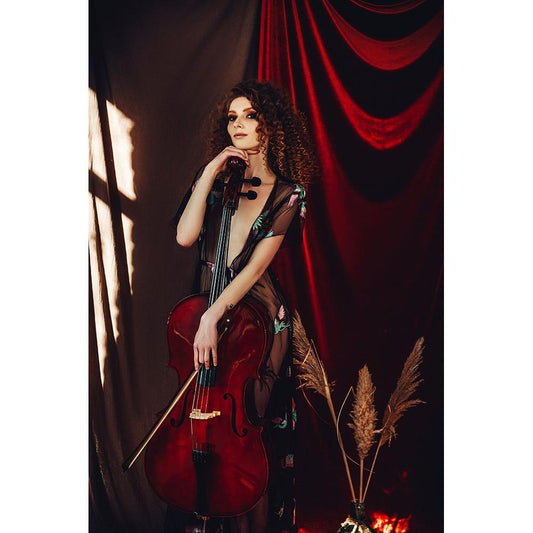 The Red Cello Black Modern Wood Framed Art Print with Double Matting by Bolgov (Axe), Ruslan