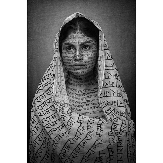RAMNAMI TRIBAL WOMAN Black Modern Wood Framed Art Print with Double Matting by Bhattacharyya, Partha