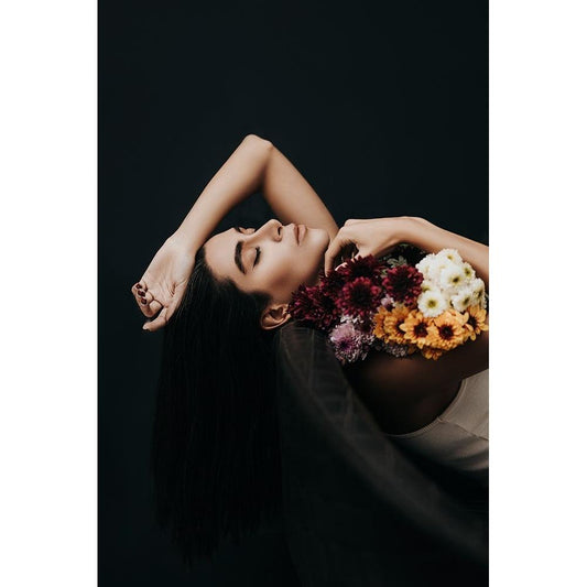 FLORAL PORTRAIT Black Modern Wood Framed Art Print with Double Matting by Adrian Chis, Paul