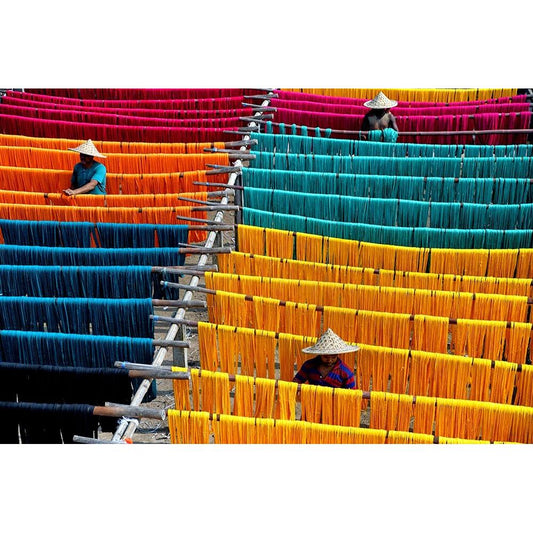 Thread drying Black Modern Wood Framed Art Print with Double Matting by Nandi, Shaibal