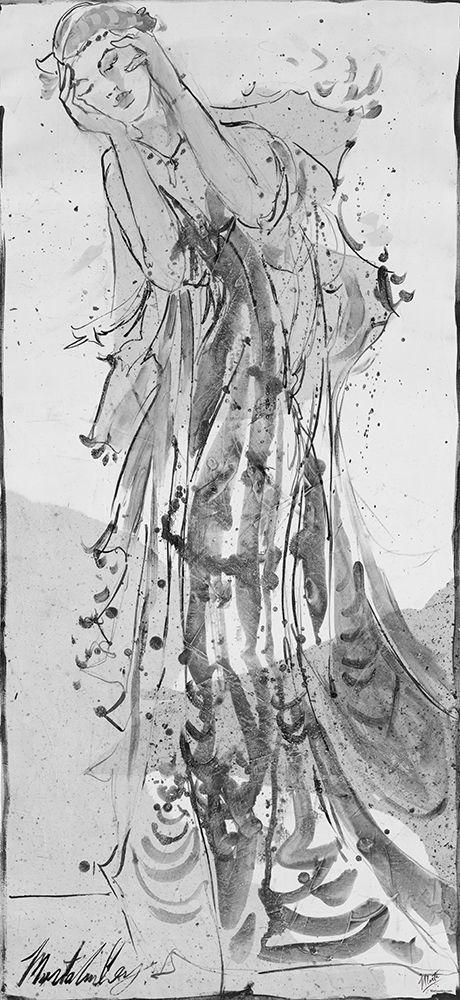 India Ink Dancer I White Modern Wood Framed Art Print with Double Matting by Wiley, Marta