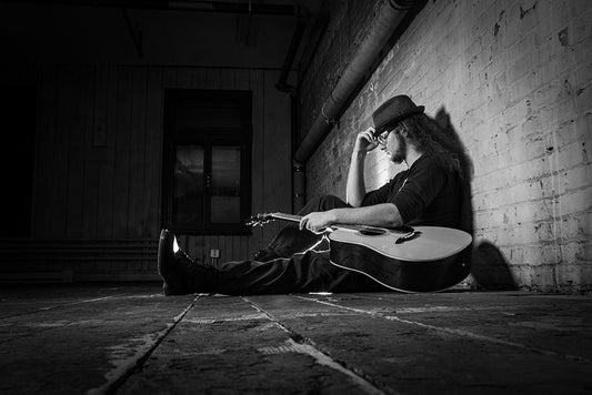 Guitar White Modern Wood Framed Art Print with Double Matting by Markachev, Leonid
