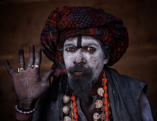 Aghori Baba White Modern Wood Framed Art Print with Double Matting by Kalla, Vivek