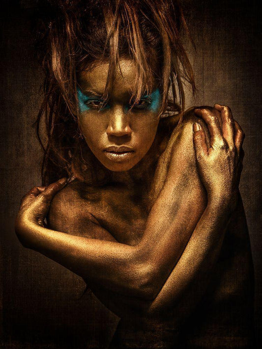 Golden Girl White Modern Wood Framed Art Print with Double Matting by Siegart