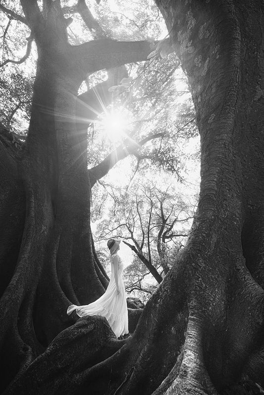 The Daughter Of Trees White Modern Wood Framed Art Print with Double Matting by TIANQI