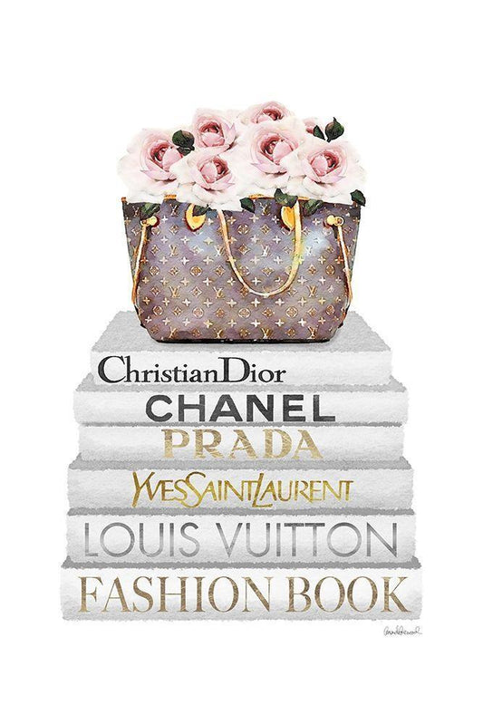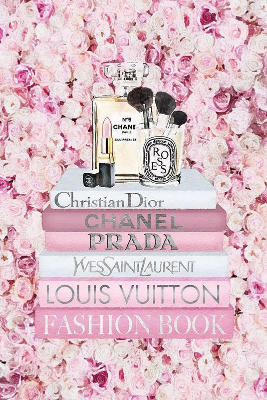 Pink Rose Book Stack White Modern Wood Framed Art Print with Double Matting by Amanda Greenwood