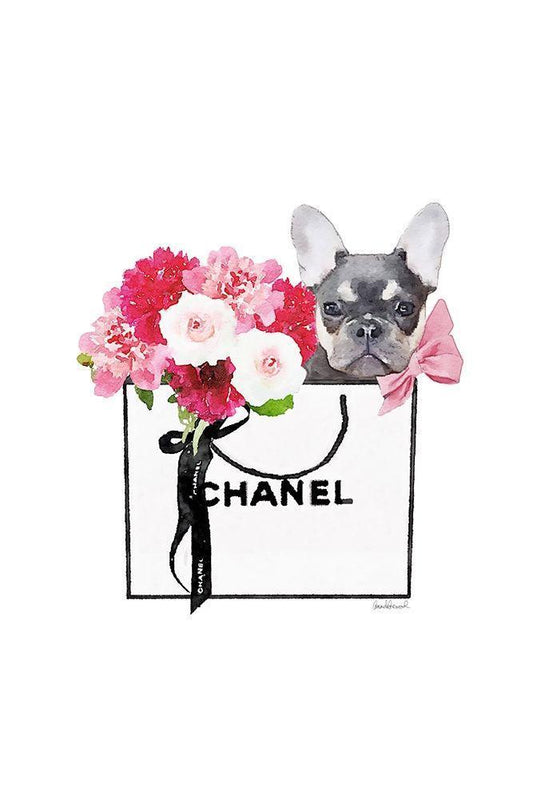 Frenchie and Shopping White Modern Wood Framed Art Print with Double Matting by Greenwood, Amanda