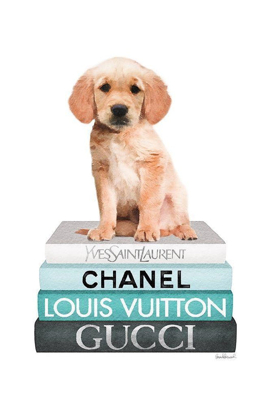 Bookstack Teal Golden White Modern Wood Framed Art Print with Double Matting by Amanda Greenwood
