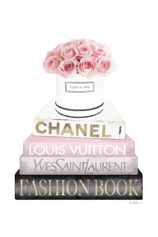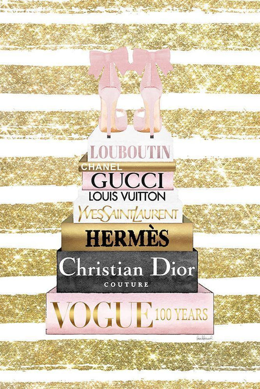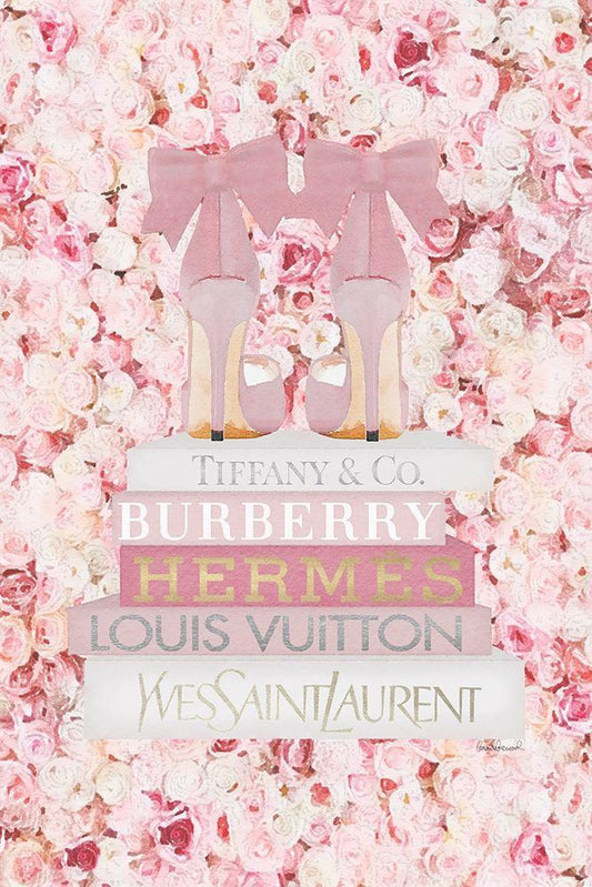 Bookstack Pink shoes White Modern Wood Framed Art Print with Double Matting by Amanda Greenwood