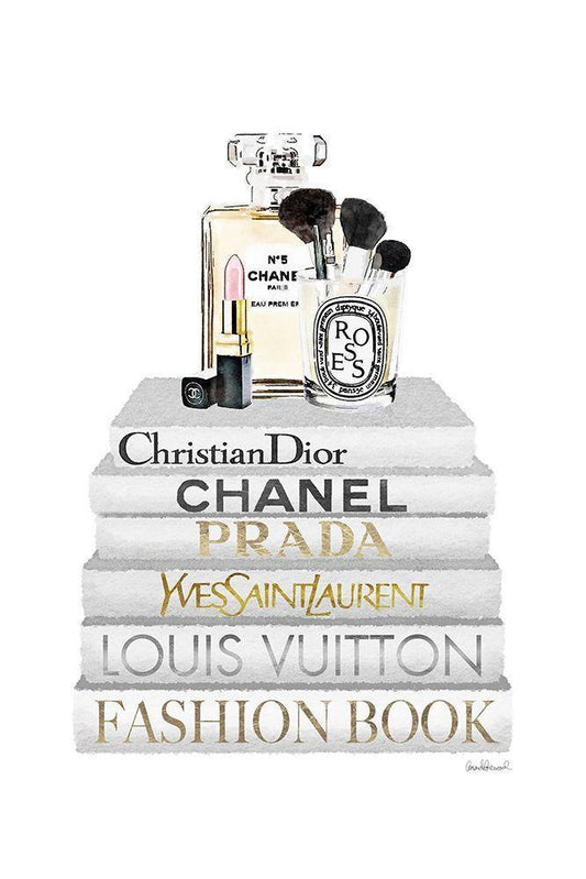 Bookstack makeup II White Modern Wood Framed Art Print with Double Matting by Amanda Greenwood