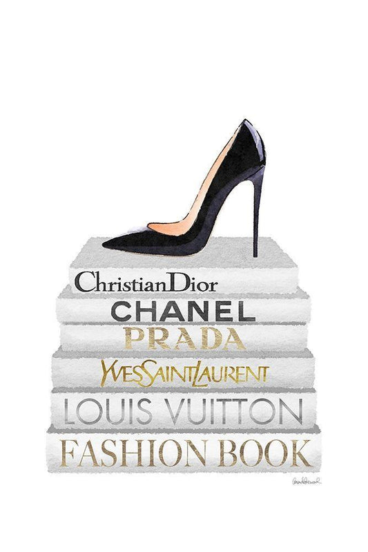 Black Heel Bookstack White Modern Wood Framed Art Print with Double Matting by Amanda Greenwood