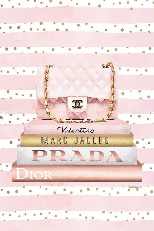 Bookstack PInk Bag II White Modern Wood Framed Art Print with Double Matting by Amanda Greenwood