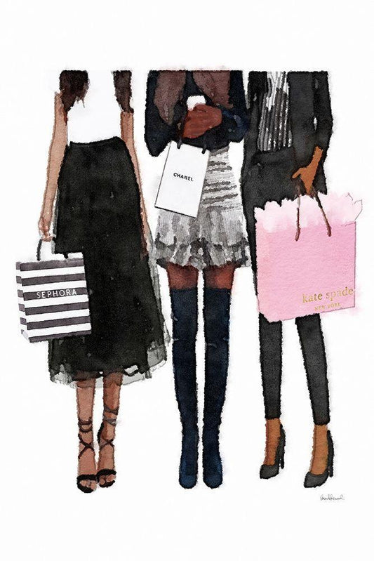 Friends Shopping White Modern Wood Framed Art Print with Double Matting by Amanda Greenwood