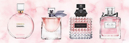 4 Pink Perfumes White Modern Wood Framed Art Print with Double Matting by Amanda Greenwood
