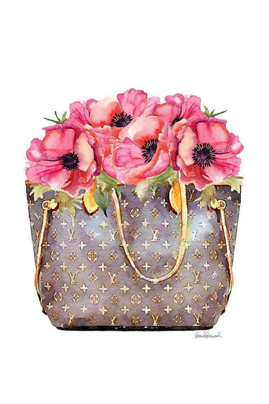 Fashion Bag with Peonies White Modern Wood Framed Art Print with Double Matting by Amanda Greenwood
