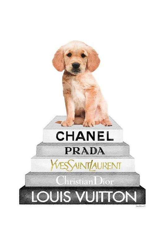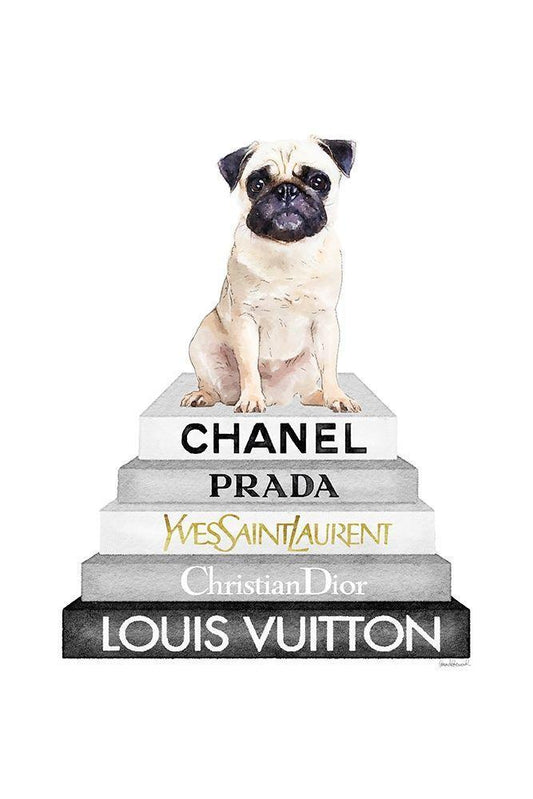 Pug Bookstack White Modern Wood Framed Art Print with Double Matting by Amanda Greenwood
