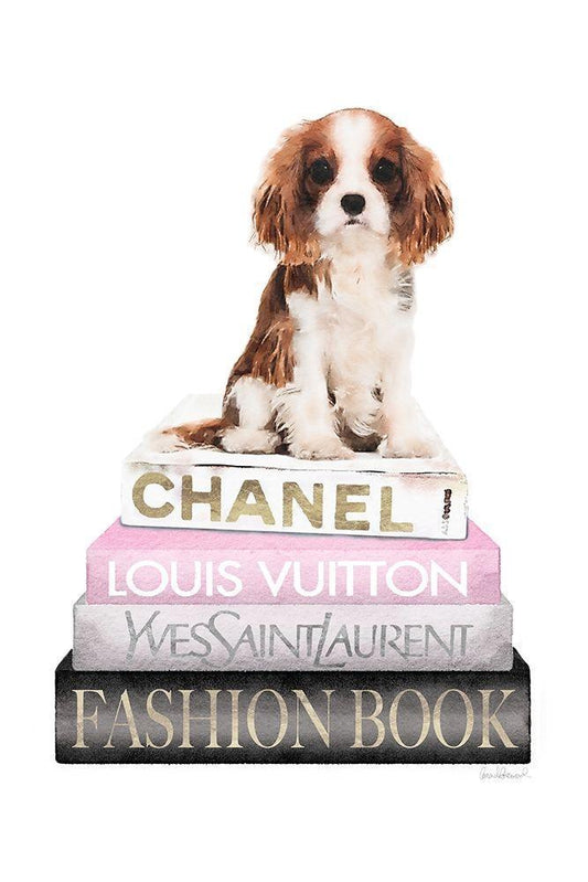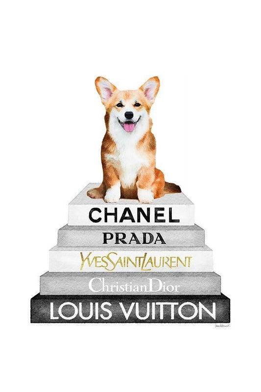 Corgi Bookstack White Modern Wood Framed Art Print with Double Matting by Amanda Greenwood
