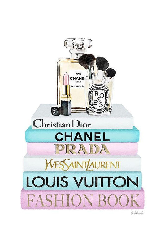 Perfume Book Stack White Modern Wood Framed Art Print with Double Matting by Amanda Greenwood