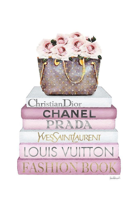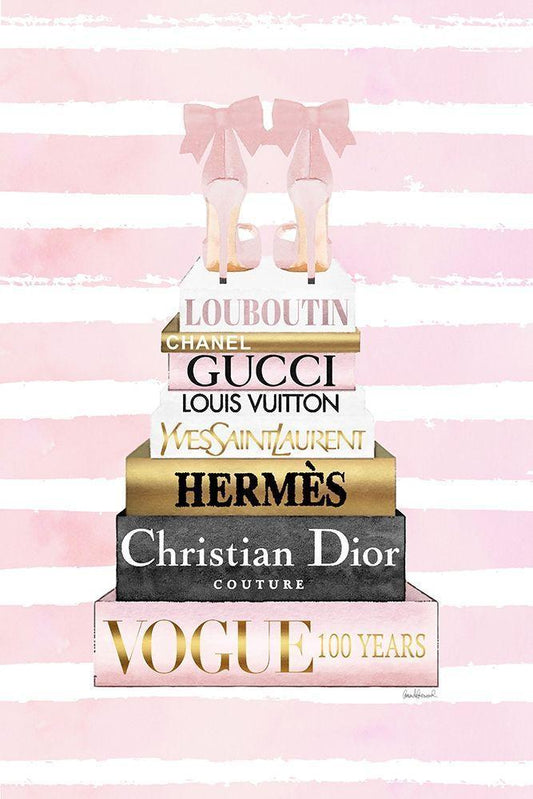 Bookstack Pink shoes II White Modern Wood Framed Art Print with Double Matting by Amanda Greenwood