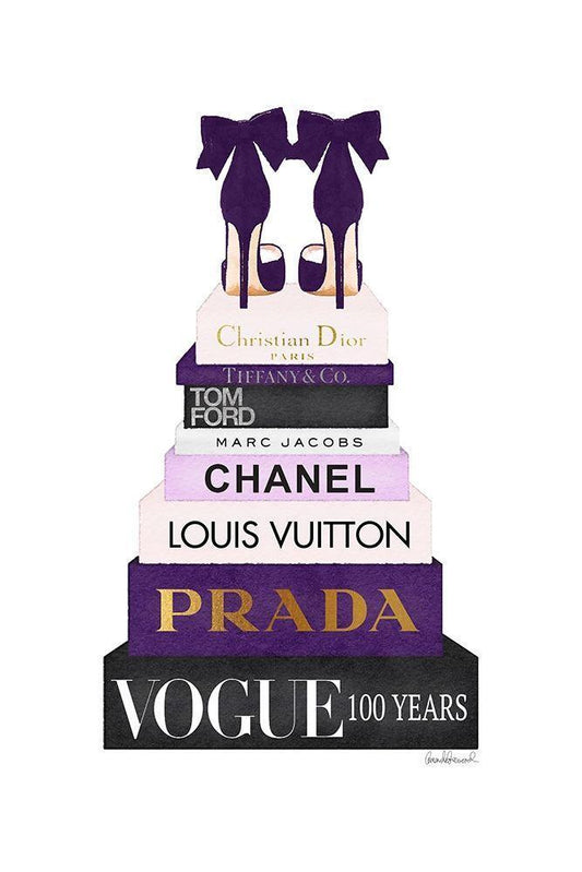 Bookstack Purple White Modern Wood Framed Art Print with Double Matting by Amanda Greenwood