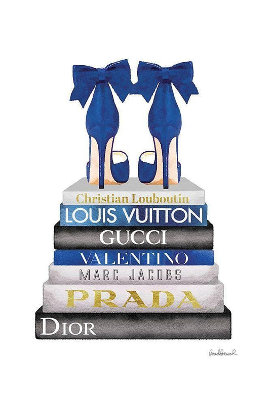 Bookstack Navy White Modern Wood Framed Art Print with Double Matting by Amanda Greenwood