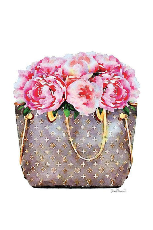 Pink Peony Bag White Modern Wood Framed Art Print with Double Matting by Amanda Greenwood