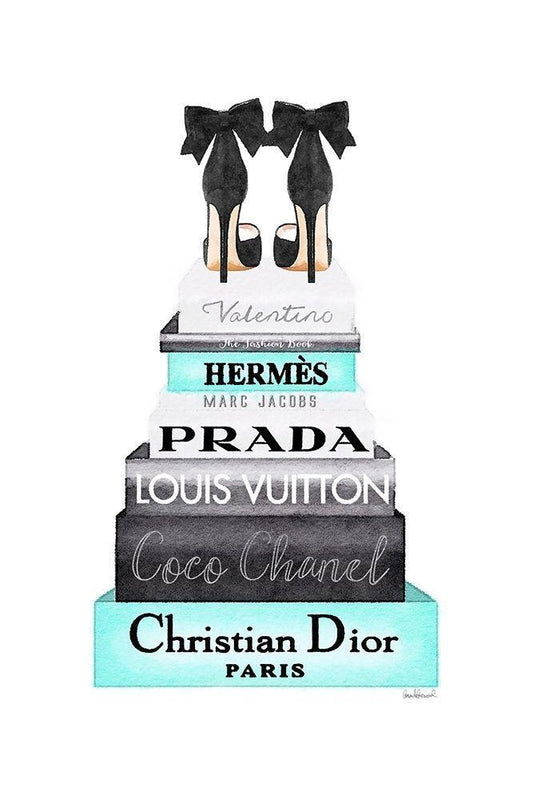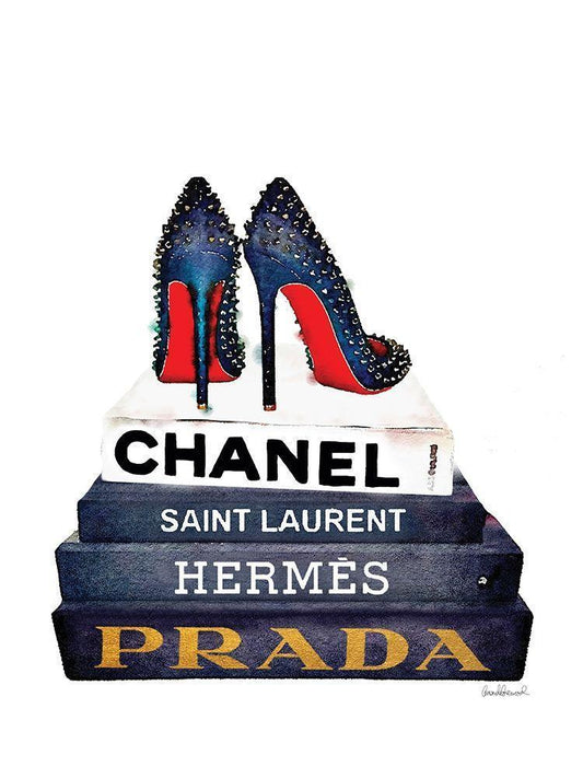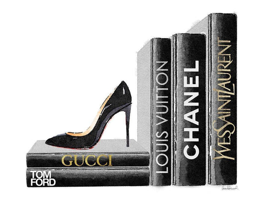 Red Sole Book Stack White Modern Wood Framed Art Print with Double Matting by Greenwood, Amanda