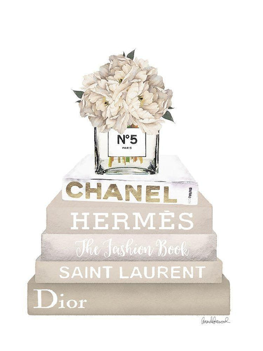 Cream Peony Book Stack White Modern Wood Framed Art Print with Double Matting by Greenwood, Amanda