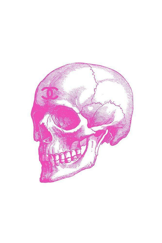 Pink Skull White Modern Wood Framed Art Print with Double Matting by Greenwood, Amanda
