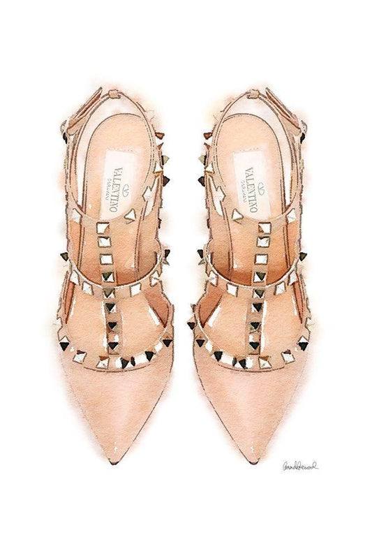 Nude Stud Shoes White Modern Wood Framed Art Print with Double Matting by Greenwood, Amanda