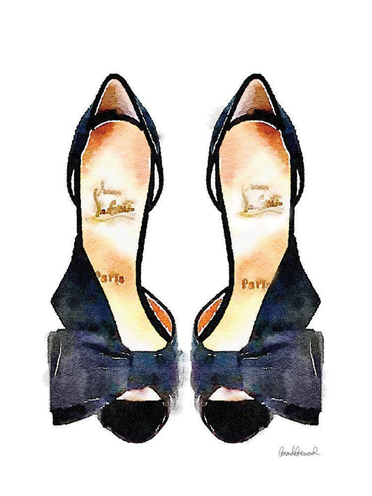 Black Front Bow Shoes White Modern Wood Framed Art Print with Double Matting by Greenwood, Amanda