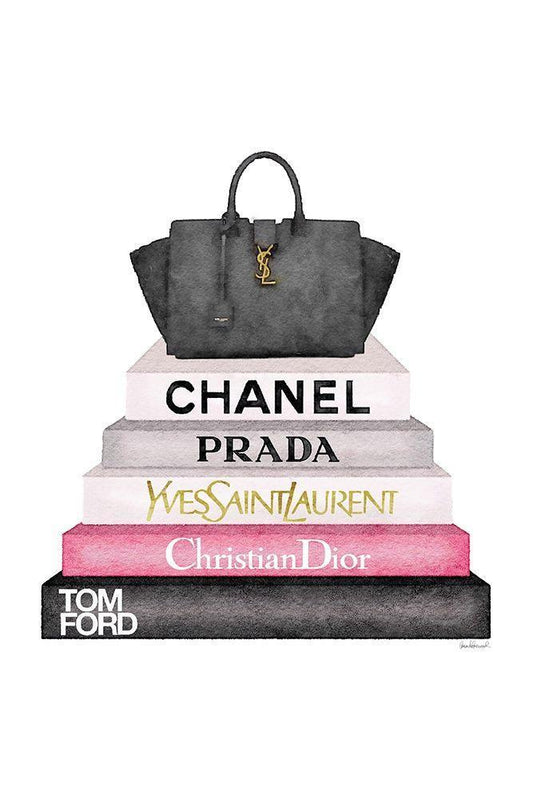 Pink Bookstack with bag White Modern Wood Framed Art Print with Double Matting by Greenwood, Amanda
