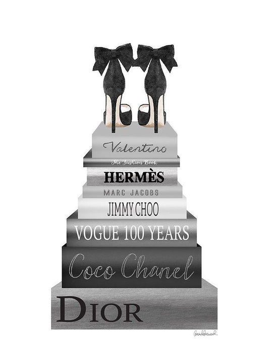 Grey Book Stack Shoe White Modern Wood Framed Art Print with Double Matting by Greenwood, Amanda