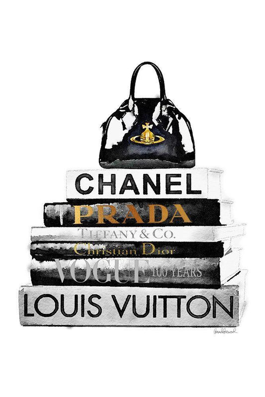 Black Bag Bookstack White Modern Wood Framed Art Print with Double Matting by Greenwood, Amanda