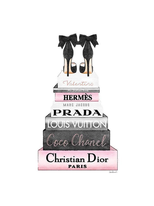 Grey Ink Book Stack Shoe White Modern Wood Framed Art Print with Double Matting by Greenwood, Amanda