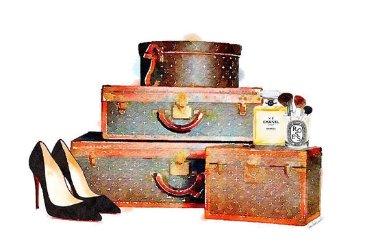 Luggage Collection White Modern Wood Framed Art Print with Double Matting by Greenwood, Amanda