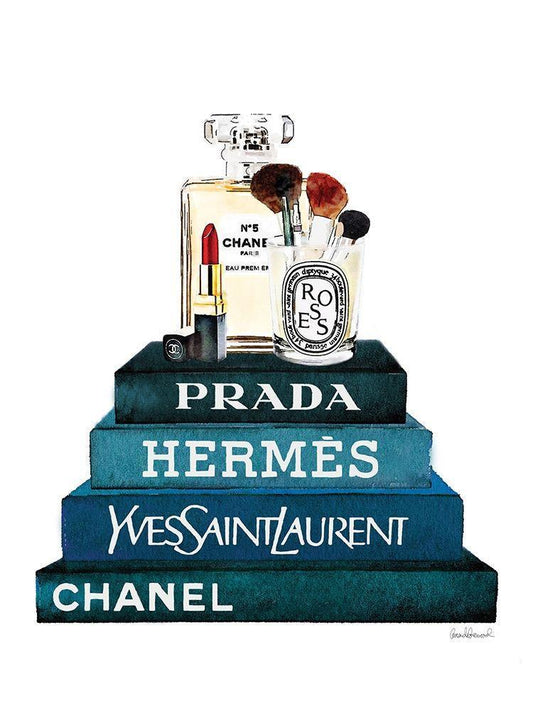 Teal Book Stack Makeup White Modern Wood Framed Art Print with Double Matting by Greenwood, Amanda