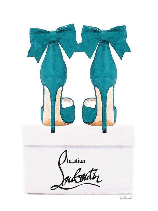 Teal Shoes with Box White Modern Wood Framed Art Print with Double Matting by Greenwood, Amanda