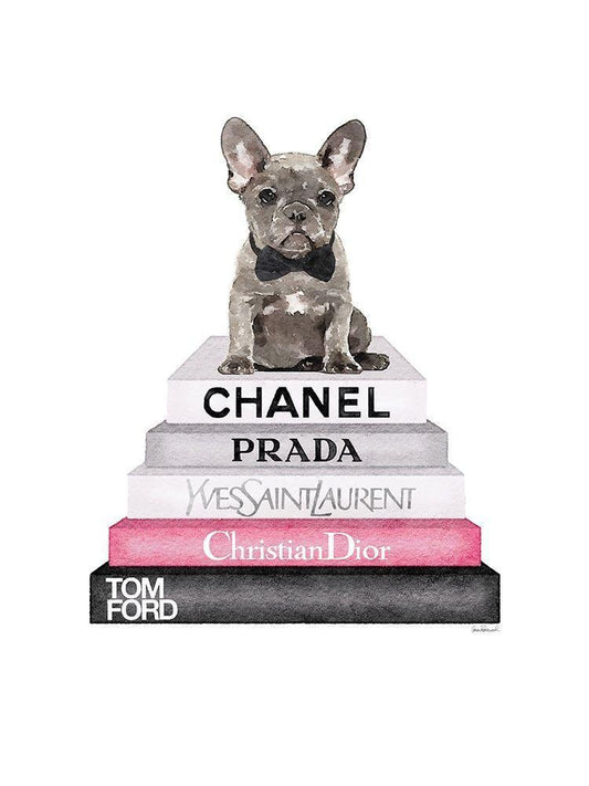 Grey Frenchie Bookstack White Modern Wood Framed Art Print with Double Matting by Greenwood, Amanda