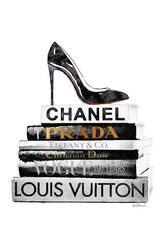 Red Sole Bookstack White Modern Wood Framed Art Print with Double Matting by Greenwood, Amanda