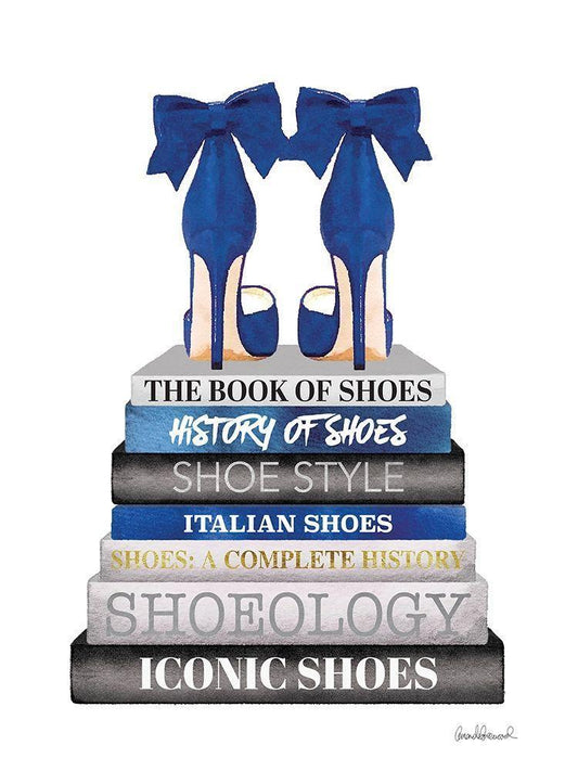Teal Bookstack Shoe White Modern Wood Framed Art Print with Double Matting by Greenwood, Amanda