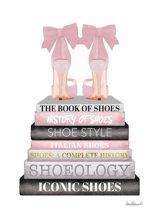 Pink Bookstack Shoe White Modern Wood Framed Art Print with Double Matting by Greenwood, Amanda