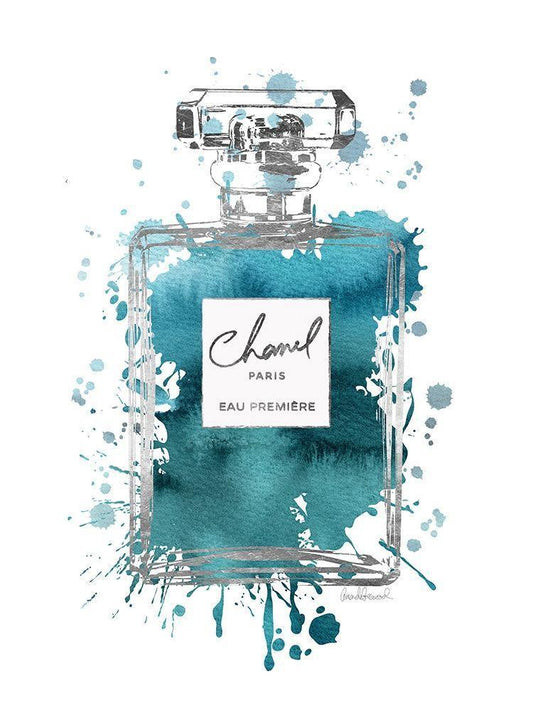 Silver Inky Perfume in Teal White Modern Wood Framed Art Print with Double Matting by Greenwood, Amanda