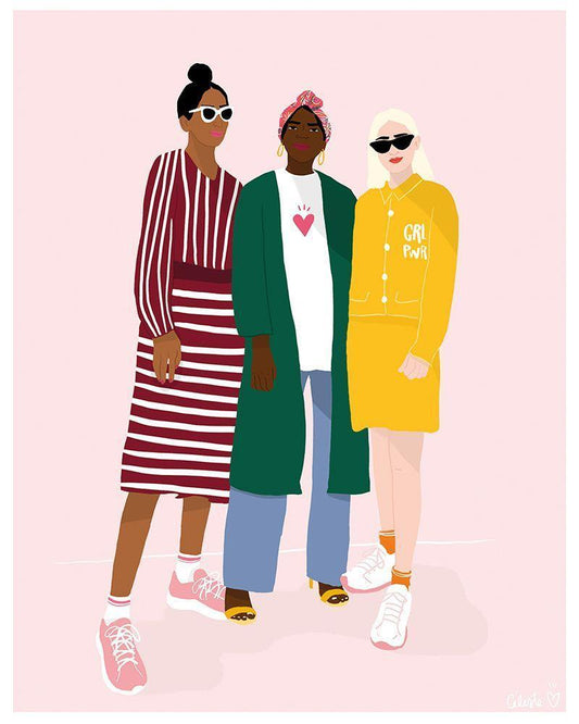 Girlfriends White Modern Wood Framed Art Print with Double Matting by BRAUN Studio