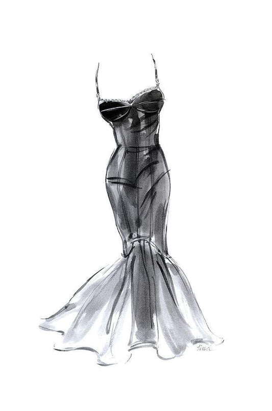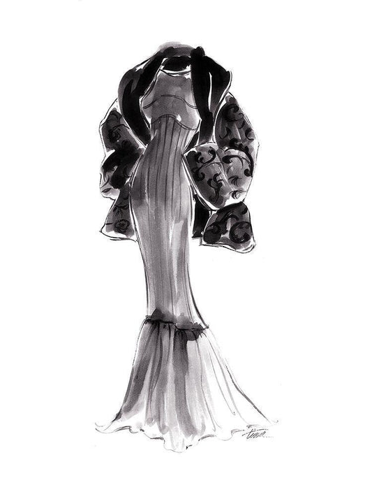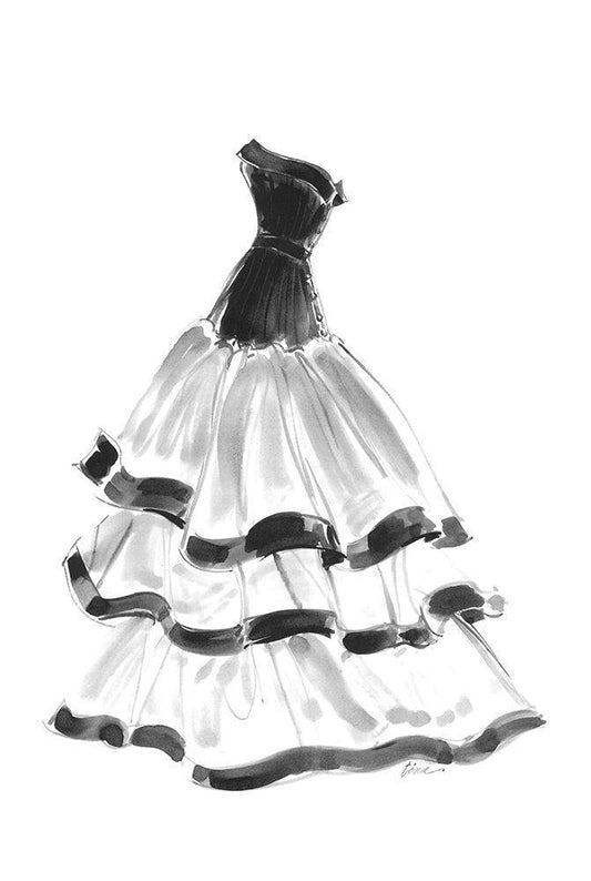 Evening Gown with Ruffles White Modern Wood Framed Art Print with Double Matting by Amico, Tina