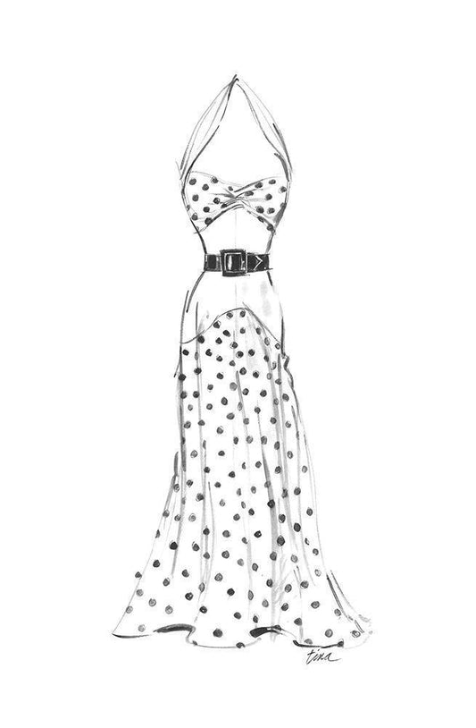 Dress in Polka Dots White Modern Wood Framed Art Print with Double Matting by Amico, Tina