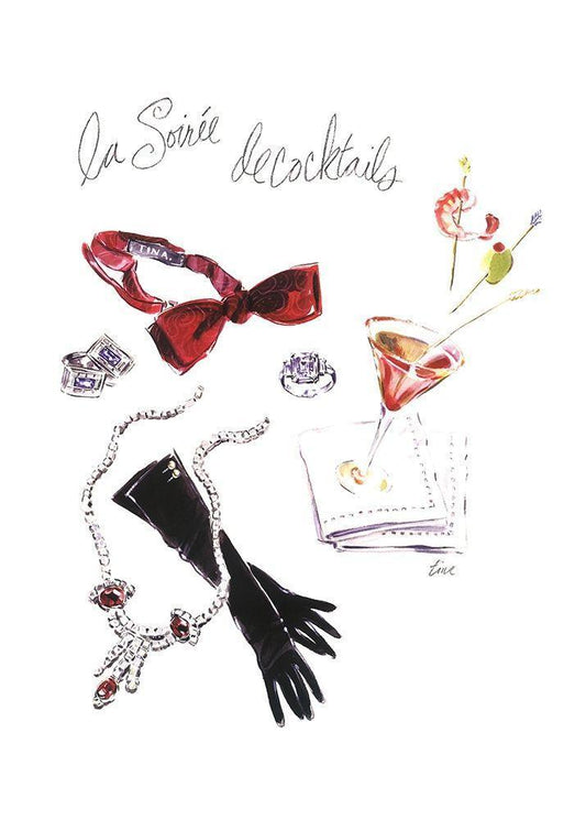 La Soirée de Cocktails White Modern Wood Framed Art Print with Double Matting by Amico, Tina