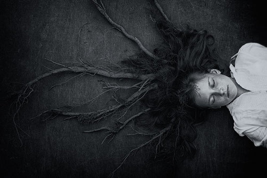 Roots White Modern Wood Framed Art Print with Double Matting by Delrue, Mirjam