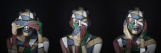 Face Of India White Modern Wood Framed Art Print with Double Matting by Lee, Ivan
