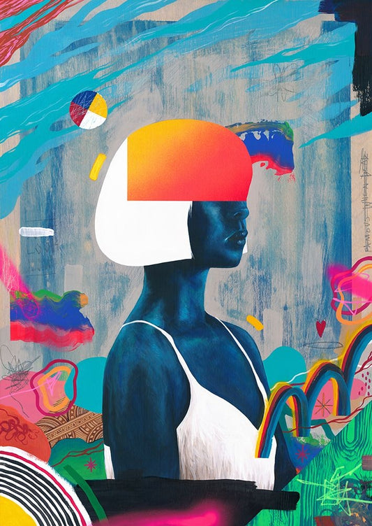 Blue Girl White Modern Wood Framed Art Print with Double Matting by Famous When Dead